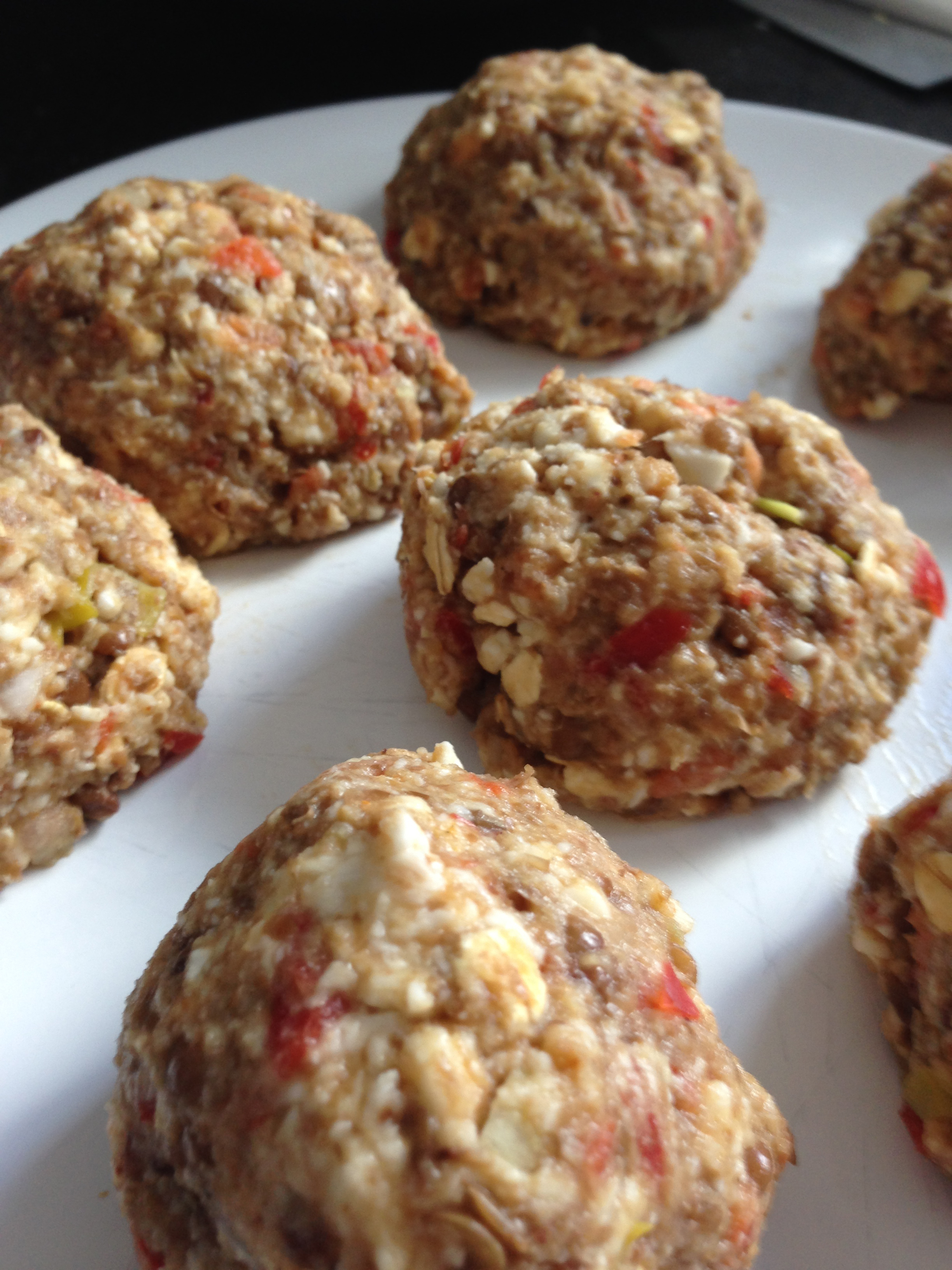 - in the pictures you can see I had problems keeping the burgers ‘in shape’. I already changed the recipe for you to prevent that from happening (coating in cornmeal. Less mozzeralla). Baking the burgers in the oven will help too. You can also use black lentils instead of the regular: black lentils are more ‘sturdy’